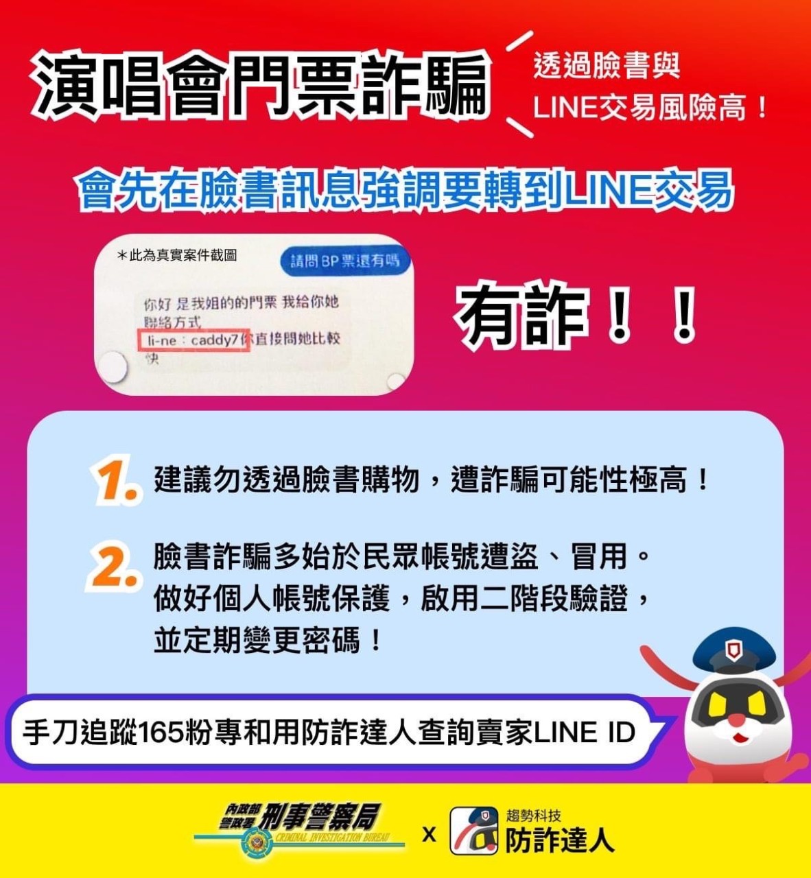 🔺臉書貼文賣家電、手機、演唱會門票,要求加LINE要小心