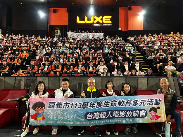 嘉義市大業實驗國民中學今(11)日上午,全校近300師生至知名影城辦理始業式,始業式以曾獲國際3D大獎的曲全立導演最新執導「台灣超人」揭開序幕,片中紀錄發生在土地上真實的生命故事,期能透過生命鬥士的勇敢堅韌,培養孩子們對生命的韌性,成為影響未來的人。