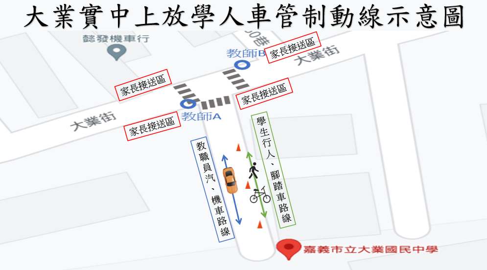 請依照學校交通導護人員或志工指揮行駛,共同守護孩子們的安全。