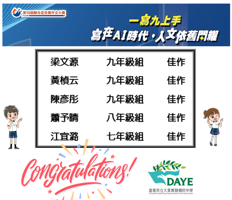 📣【第19屆聯合盃全國作文大賽嘉義初選 獲獎快訊】