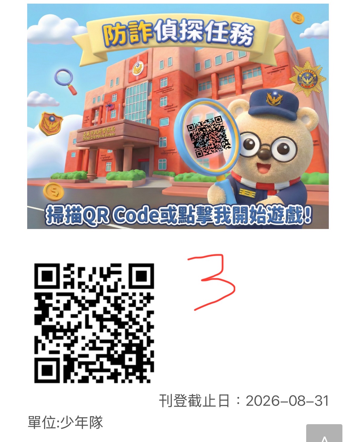 STEP3:點選圖片或掃描QR-CODE,開始「防詐偵探任務」。
