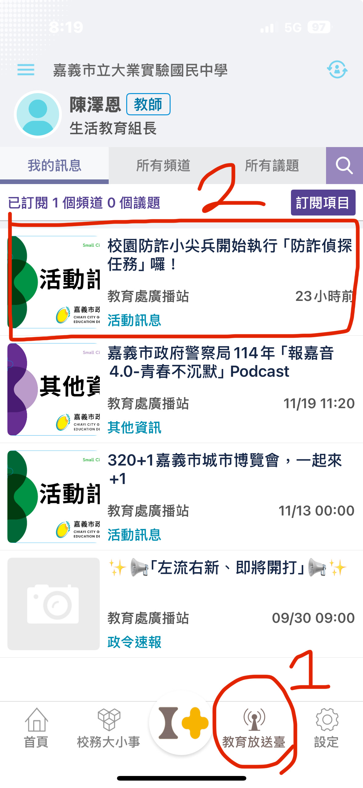 STEP2:點擊:教育放送臺→校園防詐腳尖兵開始執行「防詐偵探任務」囉!